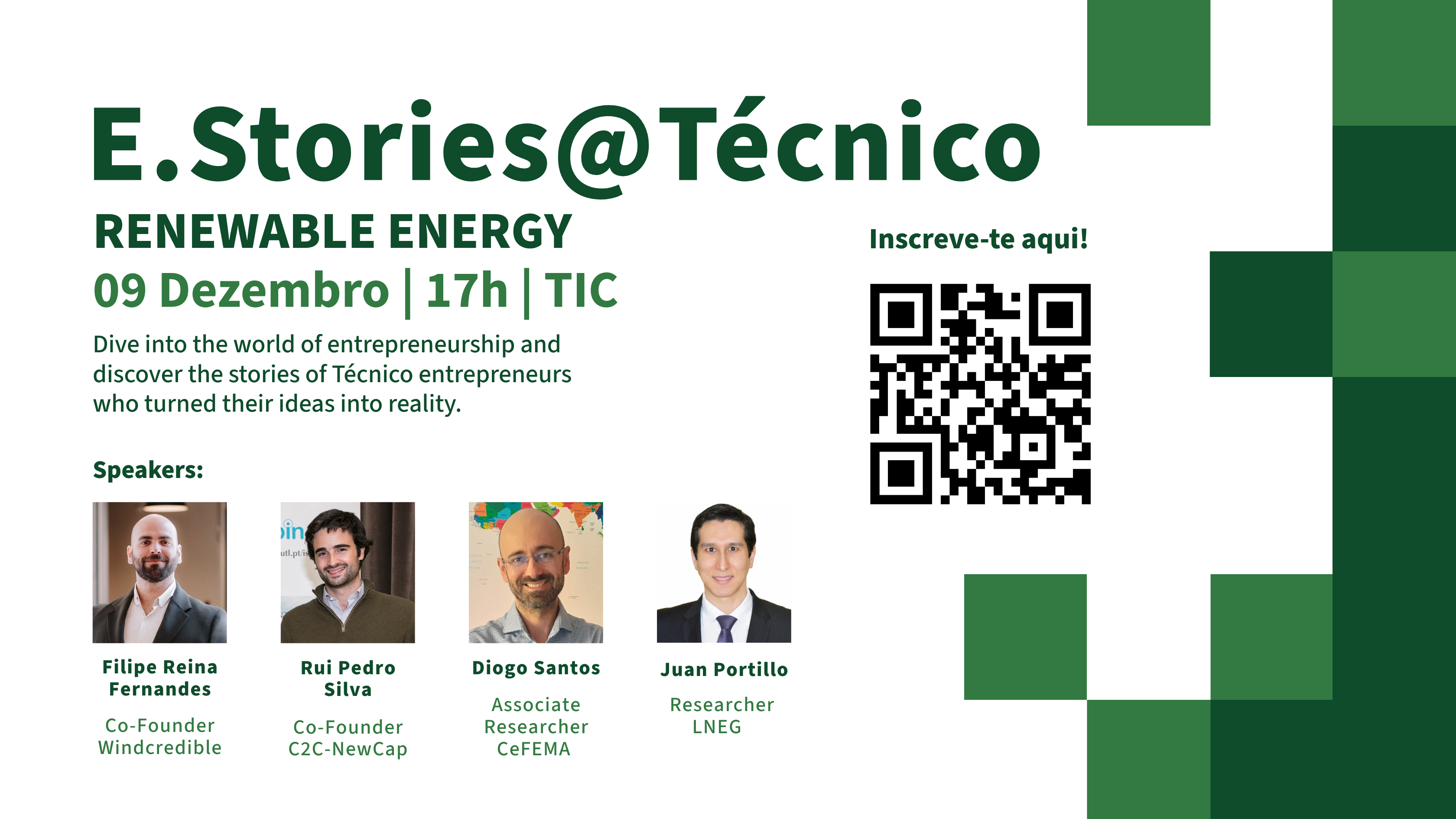 Palestras E.Stories@Técnico: Inovação na Transição Energética Terça-feira, 9 de dezembro de 2025 17:00 Técnico Innovation Center