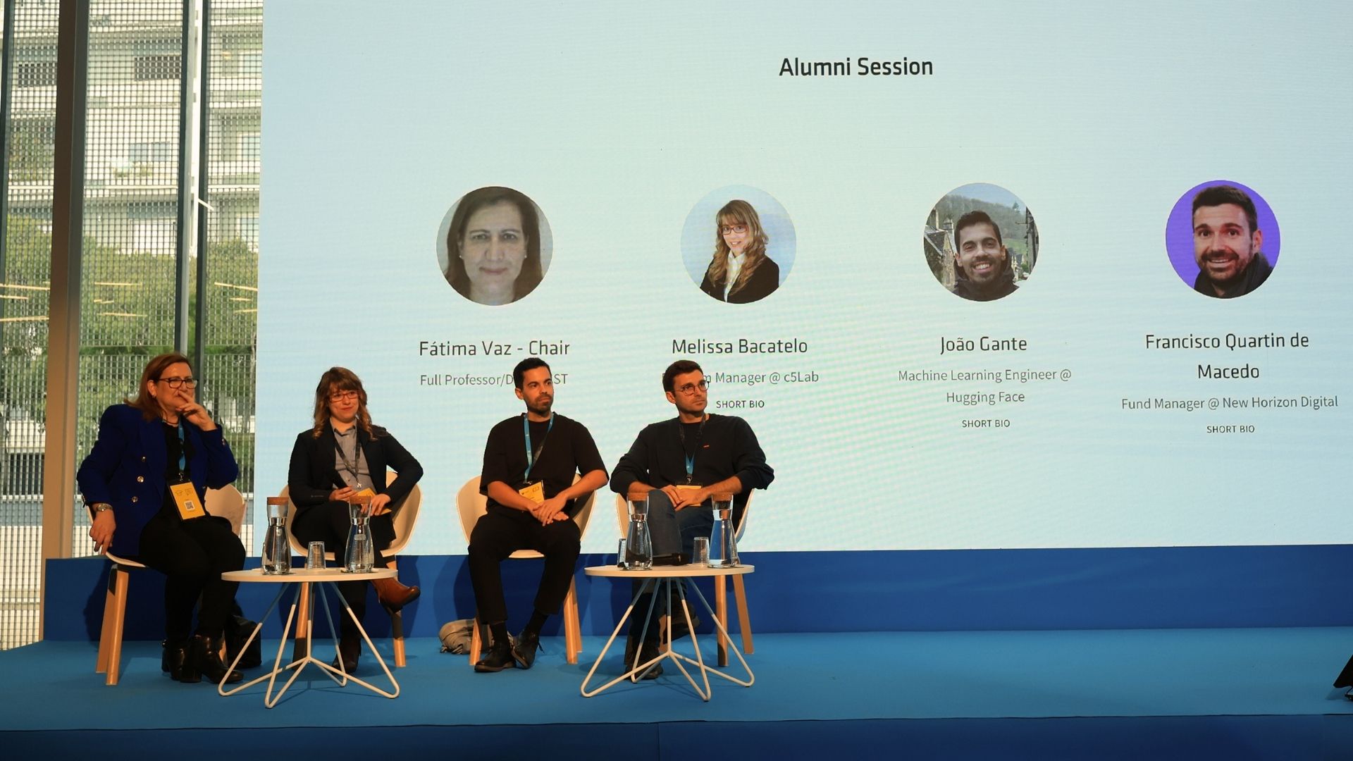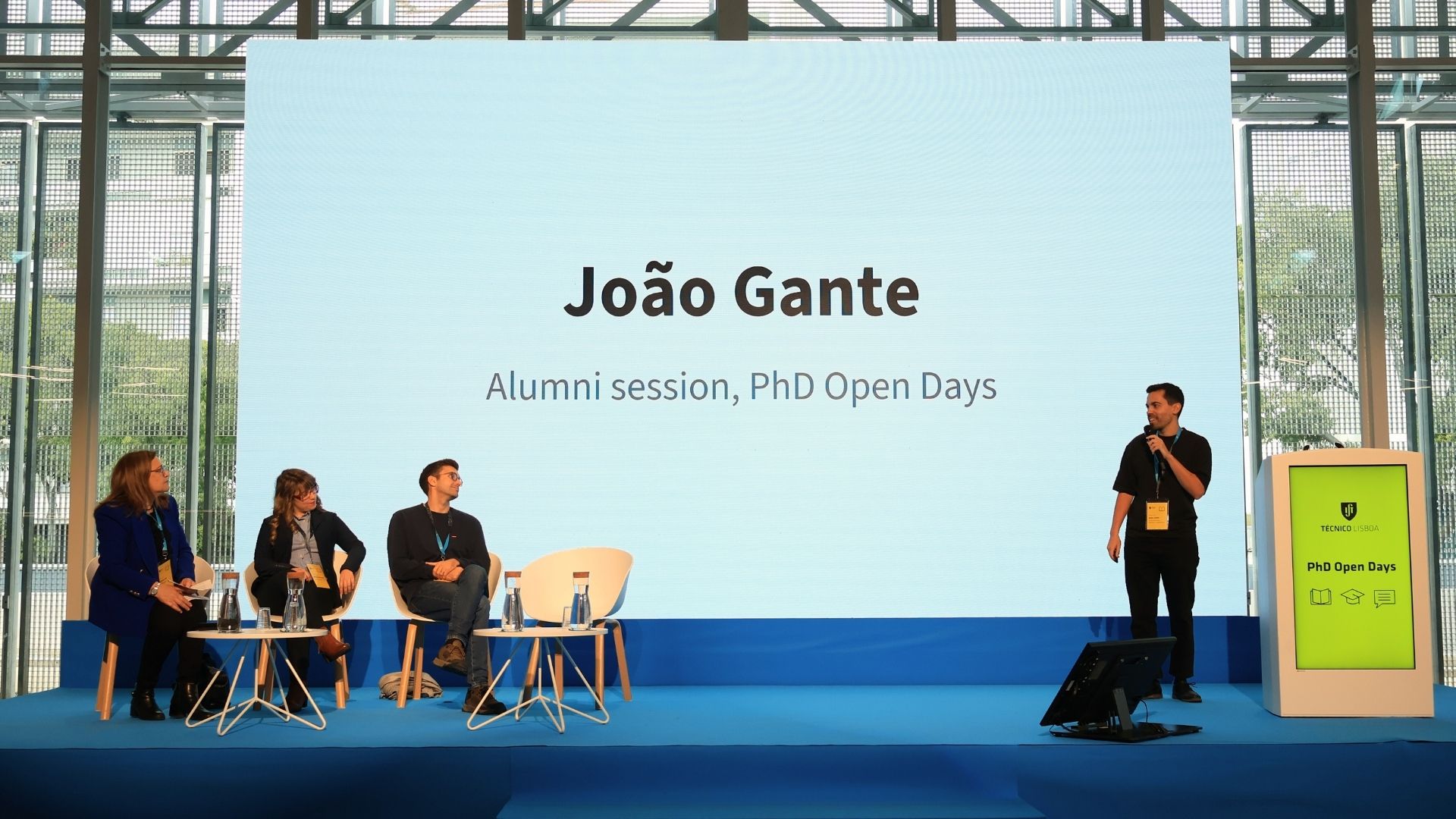 On October 28, during the PhD Open Days, the Alumni Session also took place, featuring João Gante, an alumnus of the PhD in Electrical and Computer Engineering and an engineer at Hugging Face, as well as Melissa Bacatelo and Francisco Quartin de Macedo. The session was hosted by Fátima Vaz, a faculty member at Técnico.