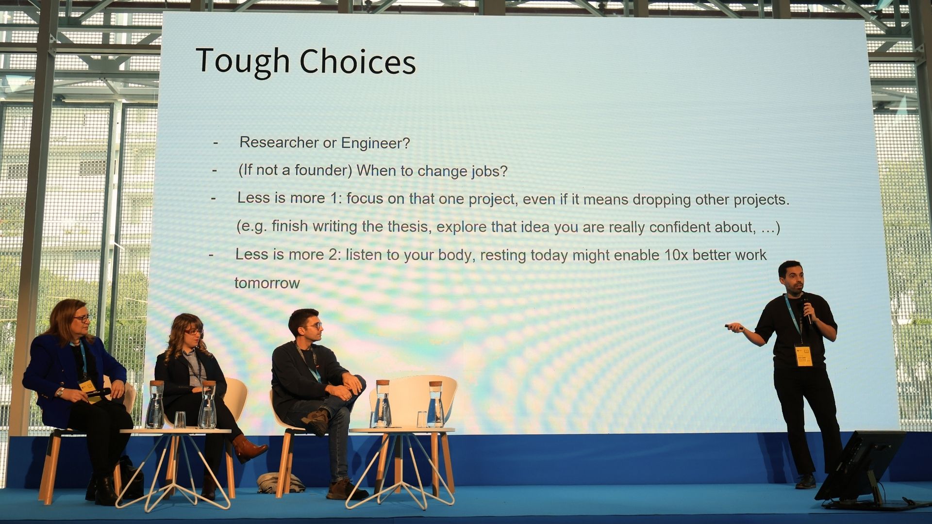 The session ended with questions from the audience, covering topics such as mindset changes during a PhD and mental health. João Gante emphasized the importance of students always asking “why,” especially when they do not understand certain issues.