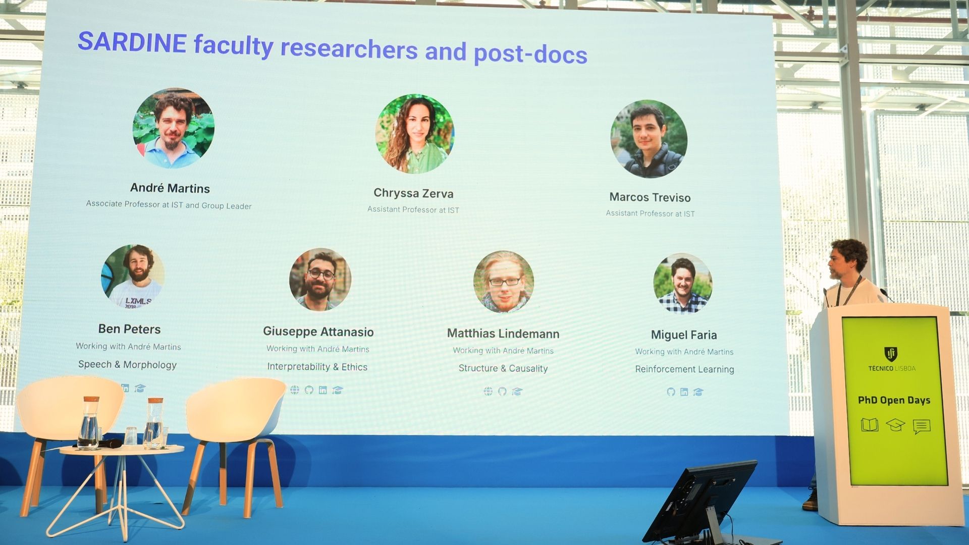 That same year, the SARDINE Lab – Structure AwaRe moDelIng for Natural Language was founded, specializing in the same research field. The researcher began by emphasizing the lab’s culture, highlighting core values such as trust, transparency, closeness, and collaboration. What is expected from a PhD student or a researcher? André Martins addressed this question by stressing the importance of reflecting on relevant problems, maintaining a focus on research quality, collaboration, and communication — including with other research groups — all of which are crucial when preparing grant applications.